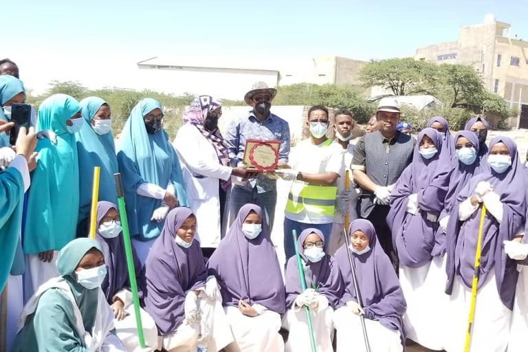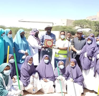 Active participation in city-wide clean-up campaigns is essential for promoting public health and environmental awareness. Students from the Hargeisa School of Health Sciences proudly joined the Hargeisa Municipality's organized city clean-up initiative, showing strong commitment to community service and hygiene promotion. Their involvement not only supported a cleaner capital but also set an example of civic responsibility. In recognition of their outstanding contribution, the students were honored with certificates of appreciation for their vital role in the campaign.